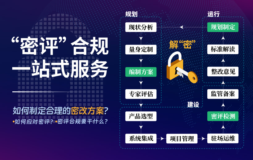 為客戶(hù)提供個(gè)性化、專(zhuān)業(yè)性的,符合相關(guān)規(guī)定要求的,全流程——密碼技術(shù)解決方案。